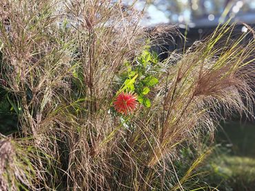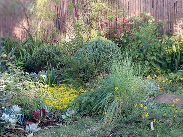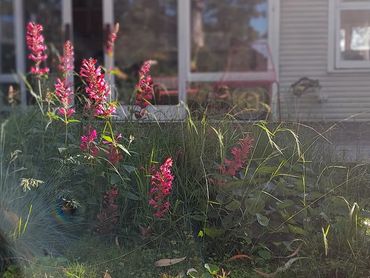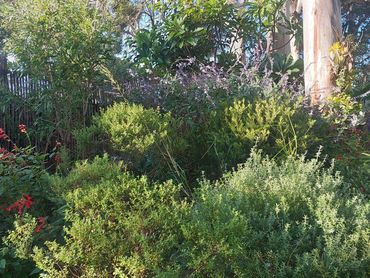 Nestled along a well-trodden school route, this full-sun verge garden invites curiosity espcially from children and dogs, with a mix of native and rescued plants, hidden fairy houses, and tiny surprises tucked among the greenery.